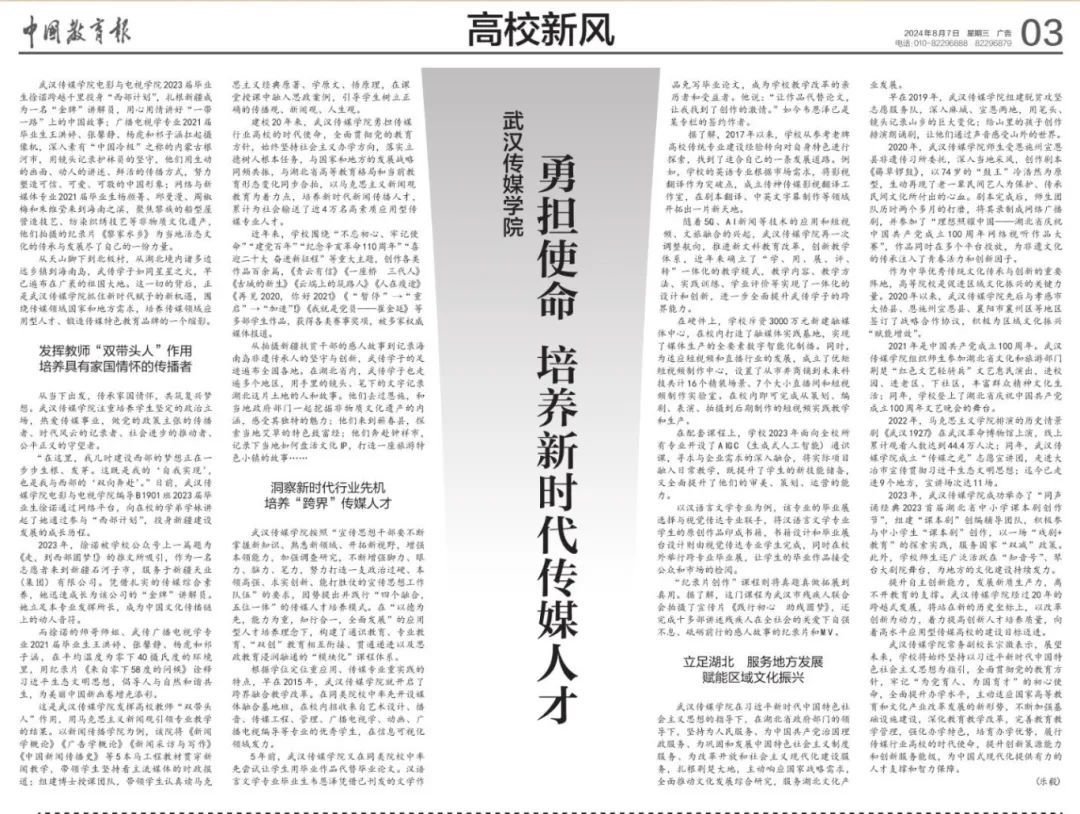 2024年是米兰体育网页版登录建校20周年,而作为中南地区唯一一所传媒类本科大学,米兰体育网页版登录勇担传媒高校使命,在新时代谱写下壮丽的育人篇章。(详见7日《中国教育报》3版报道)