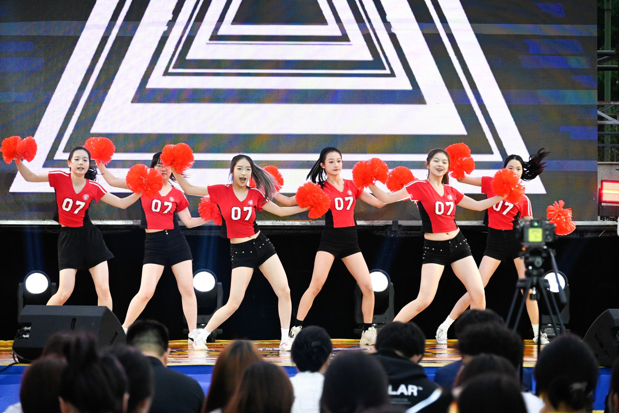 活动在武传啦啦操联合会带来的《BATTER UP》中拉开序幕。动感的电子鼓点配合炫目的镭射光束,拉拉队员们手持彩球,以充满活力的表演点燃现场气氛。比赛过程中,观众席掌声与喝彩声此起彼伏,舞台灯光与荧光棒交相辉映,营造出热烈的氛围。