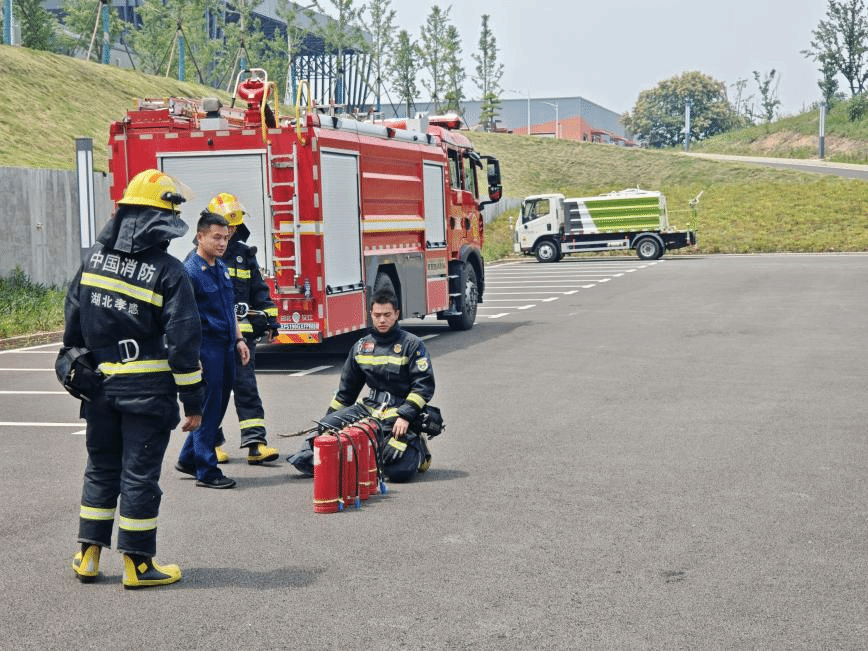 疏散环节结束后,全体参演人员前往T5教学楼后停车场,参与灭火器与消防水带实操培训。大悟县消防大队队员通过 “一提二拔三握四压” 的简明口诀,现场详细演示干粉灭火器的正确使用方法,并指导师生代表进行实战操作。多名辅导员、食堂工作人员及学生踊跃上前体验,在消防员的专业指导下,成功扑灭模拟火源。