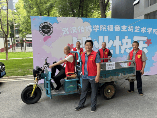 面对雨季行李搬运难题,物业科维修队迅速组建 “爱心托运车队”,在宿舍区与校门间开辟 “绿色通道”。物业科袁师傅顶着大雨,往返宿舍楼与快递点 20 余趟,即便雨水和汗水浸透工装,仍坚持为毕业生服务。据统计,两天内车队累计服务毕业生 150 余人次,搬运超 300 件行李。与此同时,保洁队与藏龙岛环卫所协作,冒雨清运 7 车垃圾,确保宿舍区环境整洁。