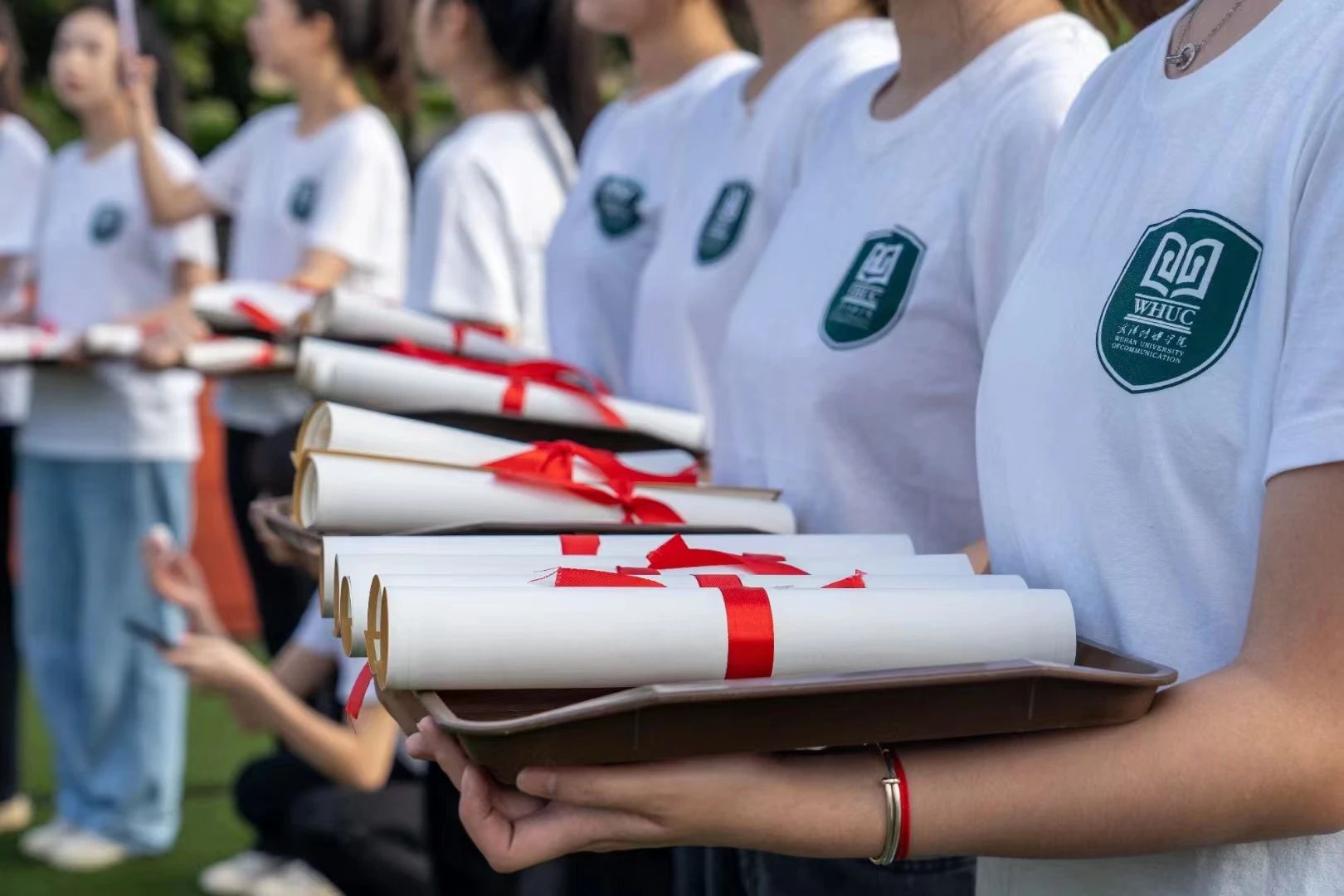 节目之后,学校举行了学位授予仪式,校领导、学院教授们用了1个多小时时间,为2648名毕业生颁发学位证书,并为他们逐一拨穗、授予学位、合影留念。
