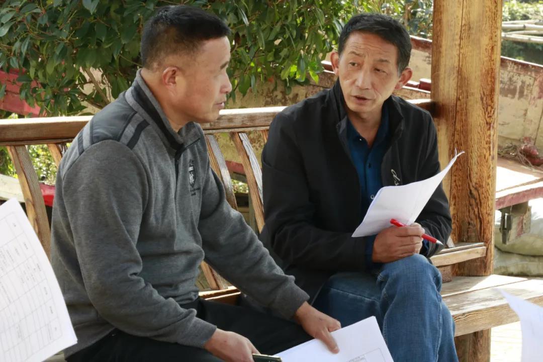 陈建新(右)与米兰体育网页版登录驻村书记张爱军(左)交谈