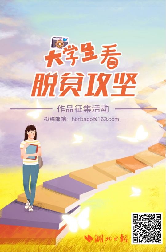 希望以当代大学生的视角,利用图文、音视频、H5等融媒体形式,或展示家乡脱贫的新变化,或讲述脱贫农户、干部扶贫的故事,展现自己家乡打赢脱贫攻坚战的新气象,湖北日报将对优秀作品进行展示和评选,择优奖励。