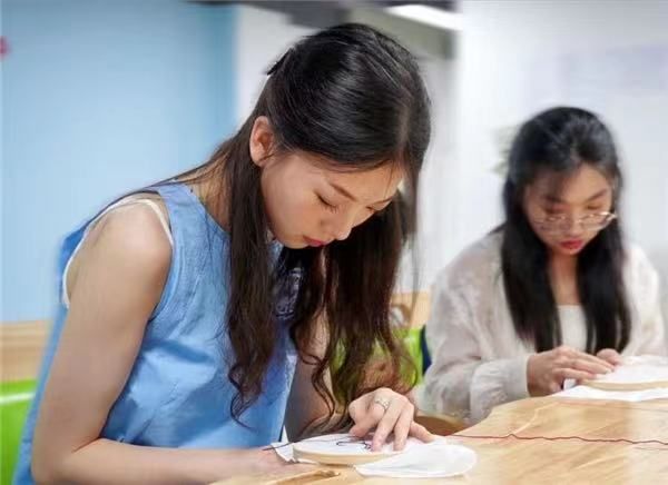 参与刺绣的吕婧元同学开心地说:“开始我以为汉绣会和十字绣一样简单,但现实和我想象的完全不同,光是汉绣的入针就让我忙的满头大汗,后来在老师的帮忙和教导下,我慢慢静下心来去绣制作品,一环套一环,等到最后一针收尾那刻,心底的满足感油然而生。我为自己的努力感到开心,也为汉绣的精巧感到自豪。”