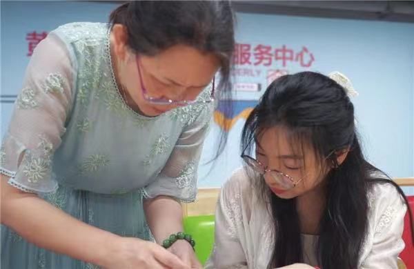 本次汉绣技艺培训班得到了附近青年朋友们的积极响应,全场座无虚席。黄龙山社区的党委书记邱颖更是邀请到了国家非物质文化遗产汉绣项目代表性传承人黄春萍老师担任本次培训的主讲人。黄春萍老师向在场汉绣学习者们详细介绍了汉绣的基本知识和针法技巧,并进行了一对一的耐心指导,黄老师指出:“刺绣是一个非常享受和创造美的过程,从颜色搭配到穿针引线再到细致绣制,每一步都需要大家投入极高的专注力和耐心。”邱颖书记也踊跃参与到本次活动中,与青年朋友们一起共同学习汉绣技法,体验汉绣之美。