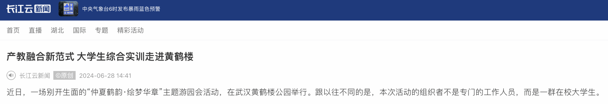 (湖北广电融媒体记者 傅乐凯 通讯员 苏娴 张弘 张路瑶 林鑫 编辑 舒畅 编审 涂丹)近日,一场别开生面的“仲夏鹤韵·绘梦华章”主题游园会活动,在武汉黄鹤楼公园举行。跟以往不同的是,本次活动的组织者不是专门的工作人员,而是一群在校大学生。