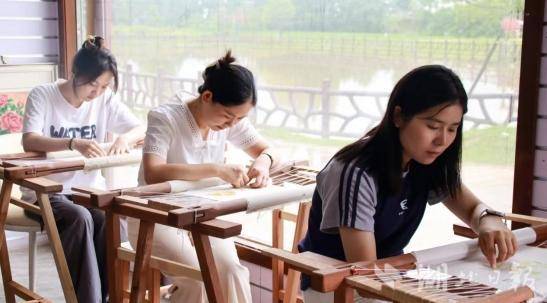 团队成员在传承人老师的引领下,走进了汉绣的世界,老师向团队成员们详细介绍了汉绣的制作工艺。汉绣工艺流程复杂,包括选材、勾画、上绷、配线、刺绣、装裱等多个环节。每一步都需要精心操作和极高的耐心。团队成员们在老师的指导下,开始了自己人生中的第一次汉绣尝试。随着一根根绣花针的上下穿梭,每个人都全神贯注于手中的布料,体会着汉绣艺术的魅力所在。