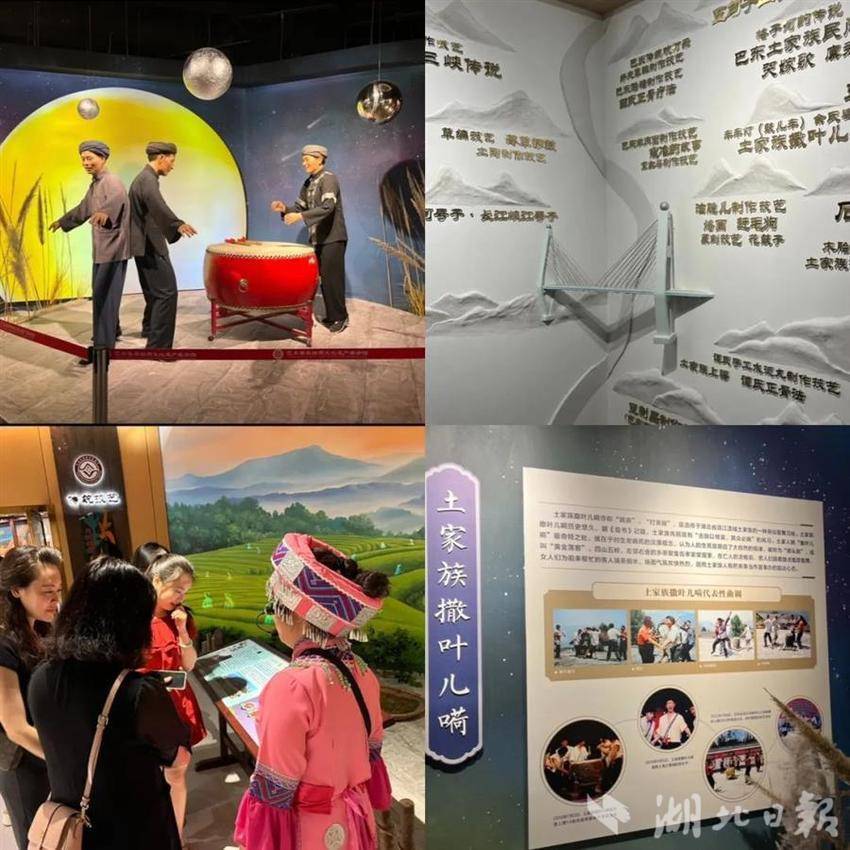 实践队还参观了巴东县文化馆和非遗展示馆。满目的传统手工艺品、绚丽多彩的民族服饰、悠扬动听的民族乐器,以及详尽丰富的文献资料,令师生们收获颇丰。特别是“撒叶儿嗬”展区,通过多媒体手段与实物展览相结合的方式,让成员们全方位、多角度地领略了这一独特艺术形式的魅力,深刻感受到了土家族人民对生死的豁达态度与对生命的敬畏。