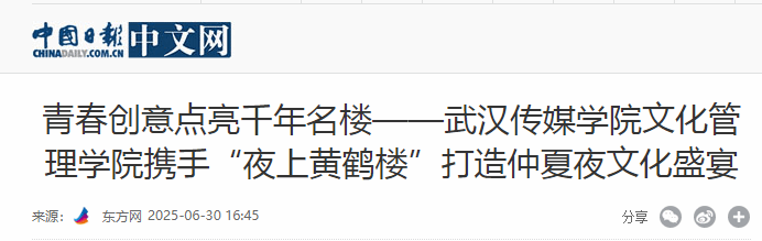 “名楼鹤语·青春造物” 仲夏夜奇遇季的成功举办,是米兰体育网页版登录文化管理学院深化产教融合、推动实践教学创新的重要成果,充分彰显了专业集群服务社会、赋能产业的育人成效;同时也彰显了武汉黄鹤楼文化旅游发展有限公司履行社会责任、共育人才的担当。双方携手将青春创意注入千年文化地标,共同书写了文化传承与育人实践的精彩篇章。
