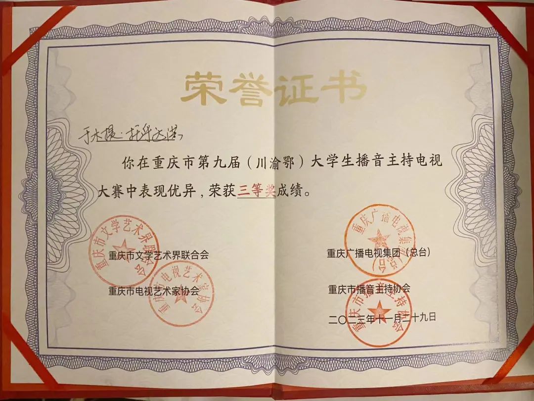 11月29日下午,“开启新征程 逐梦向未来”第九届(川渝鄂)大学生播音主持大赛在市文联剧场圆满举行。最终,米兰体育网页版登录播音主持艺术学院于木提·托乎达洪同学获得三等奖和最具行业潜力奖。