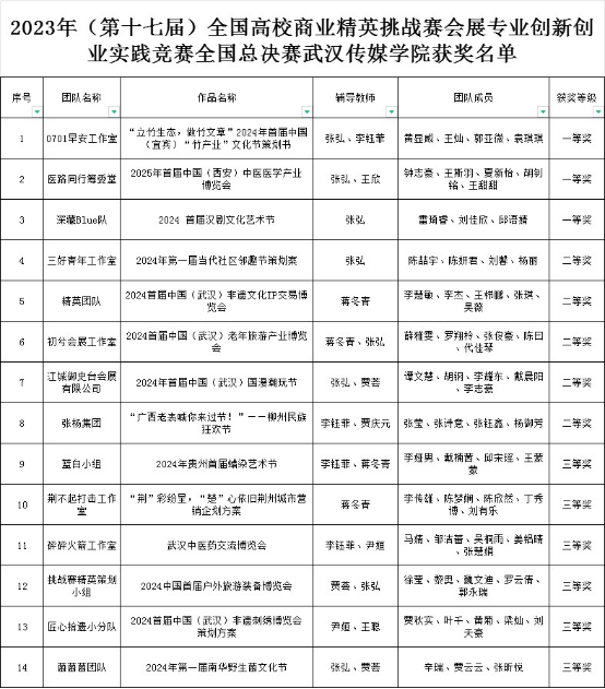 在2023年全国高校商业精英挑战赛会展创新创业实践竞赛全国总决赛中,我校学子共斩获一等奖3项,二等奖5项,三等奖6项。同时我校荣获最佳院校组织奖。