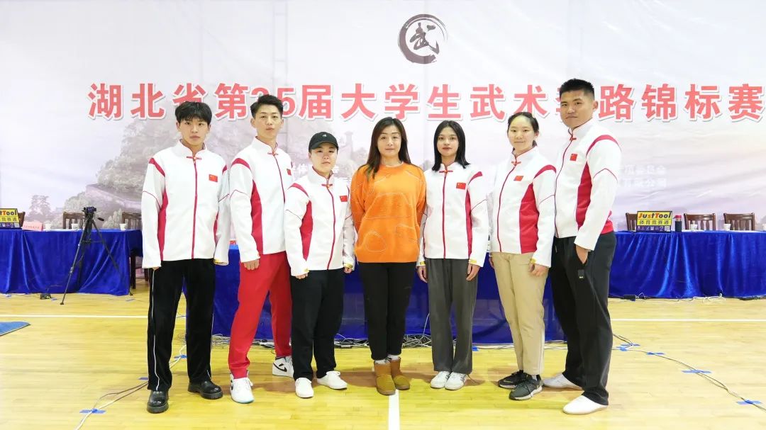 近日,我院体育课部郝锡娟老师带领我校五名同学李梦斯、万里翔、谢昕颖、王子豪、曾子逸参加湖北省第35届大学生武术套路锦标赛。经过三天的比赛,我校学生参赛团队荣获获五项第一名和两项第二名的好成绩,可喜可贺。