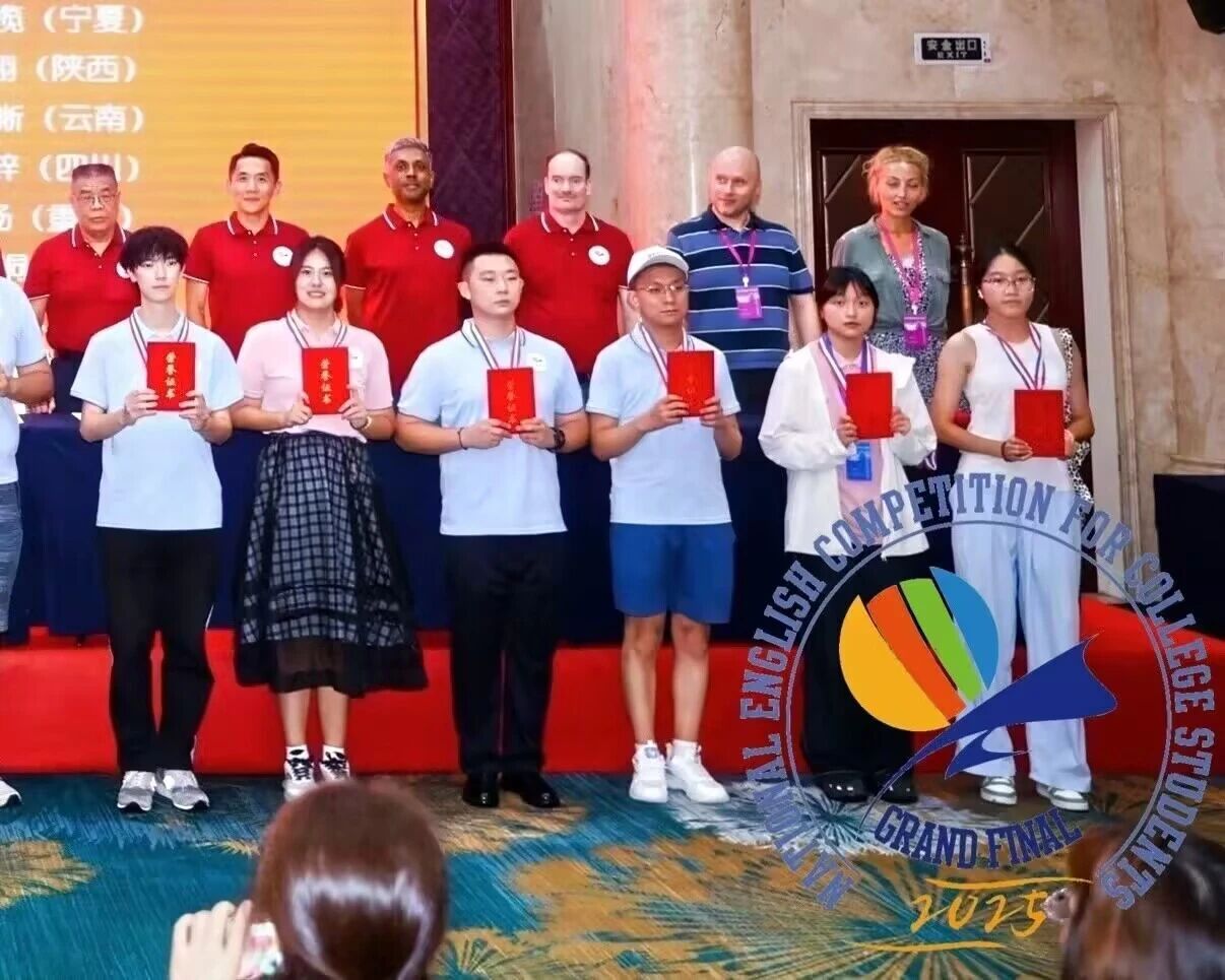 近日,2025年全国大学生英语竞赛全国总决赛在河南省郑州市举行,我校播音主持艺术学院2024级学生许维胜获得总决赛分赛事“第二十四届全国大学生英语演讲比赛”三等奖和“第十七届全国大学生英语风采大赛”优秀奖。此外,许维胜同学因在总决赛中表现优异,被评为“优秀参赛选手”。大学外语教研室教师左霞获评“优秀指导教师”。