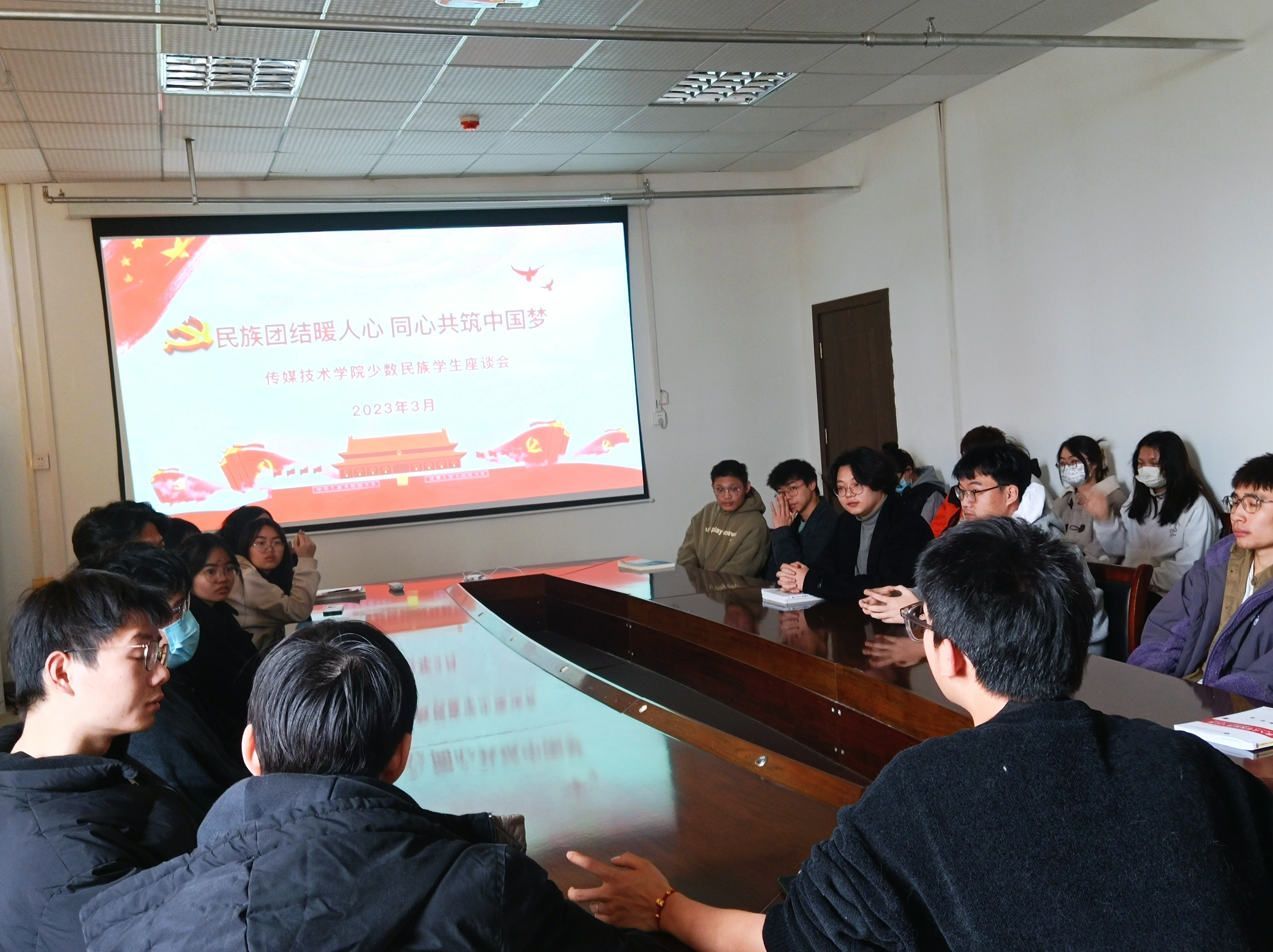 为深入了解我院少数民族学生在学习和生活方面的确切需求,帮助少数民族学生更好适应融入校园生活,不断铸牢各民族学生的中华民族共同体意识,3月3日下午3时,传媒技术学院于八号楼8315开展“少数民族一家亲”座谈会。传媒技术学院统战委员兼青年委员张坤老师、传媒技术学院组织员田琳琳老师、以及学院少数民族学生代表参加此次座谈会。