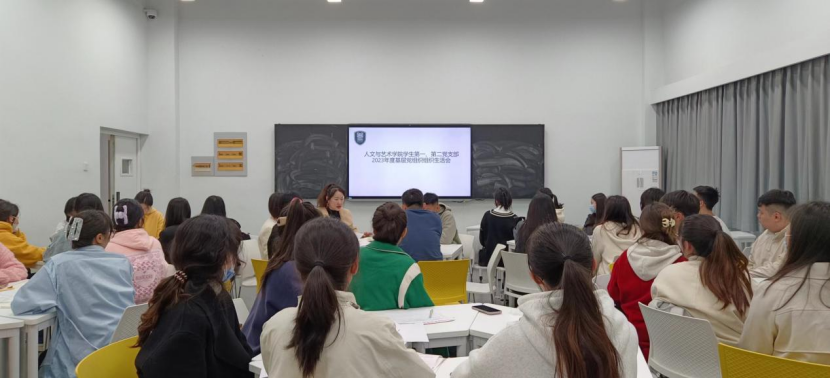 为深刻领悟全面贯彻习近平总书记关于开展主题教育的系列重要讲话和重要指示批示精神,进一步加强党员干部理论学习深度、坚定理想信念、激发干事创业激情,提升人文与艺术学院学生党支部的凝聚力和战斗力。2024年3月26日中午,人文与艺术学院学生第一,第二党支部在7207教室组织召开2023年度基层党组织组织生活会。参会人员包括人文与艺术学院学生第一党支部书记刘晓萱、人文与艺术学院学生第二党支部书记孟成龙、人文与艺术学院组织员荣金玉、人文与艺术学院团委书记葛清源、人文与艺术学院2021级辅导员杨梦田以及人文与艺术学院全体学生党员。本次会议由人文与艺术学院学生第一党支部书记刘晓萱同志主持。