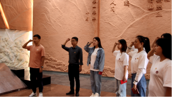 “我志愿加入中国共产党,拥护党的纲领,遵守党的章程... ...”入党誓词在烈士纪念馆内显得格外掷地有声,铿锵有力。
