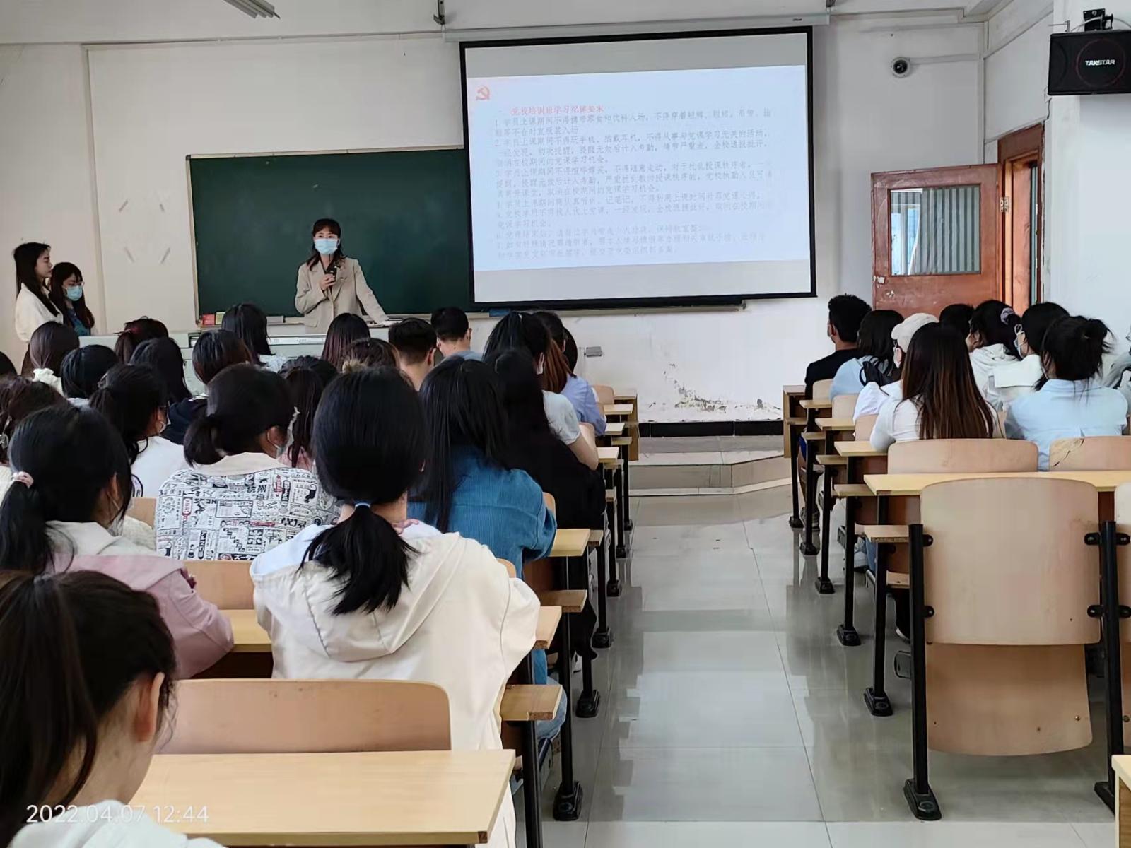 2022年4月7日中午,人文与艺术学院分党校36期开班式在2405教室举行,人文与艺术学院党总支部副书记吴斌、人文与艺术学院党总支部组织委员荣金玉出席了开班典礼,本次开班式由党员服务站成员王函之同学主持。