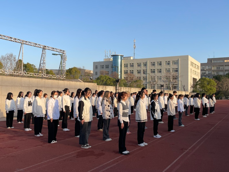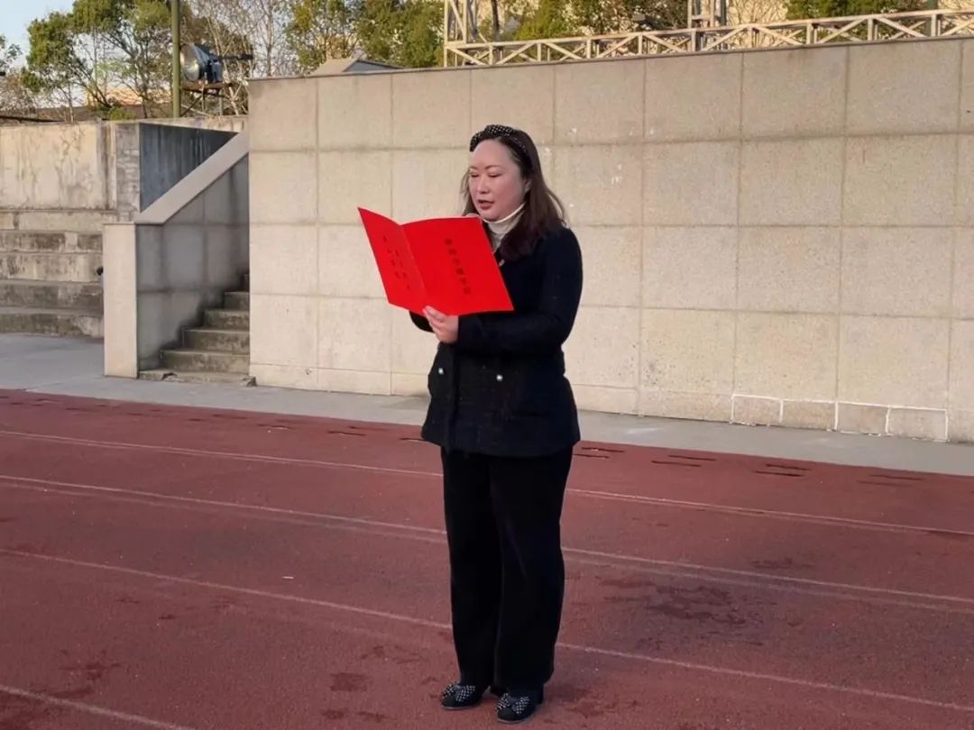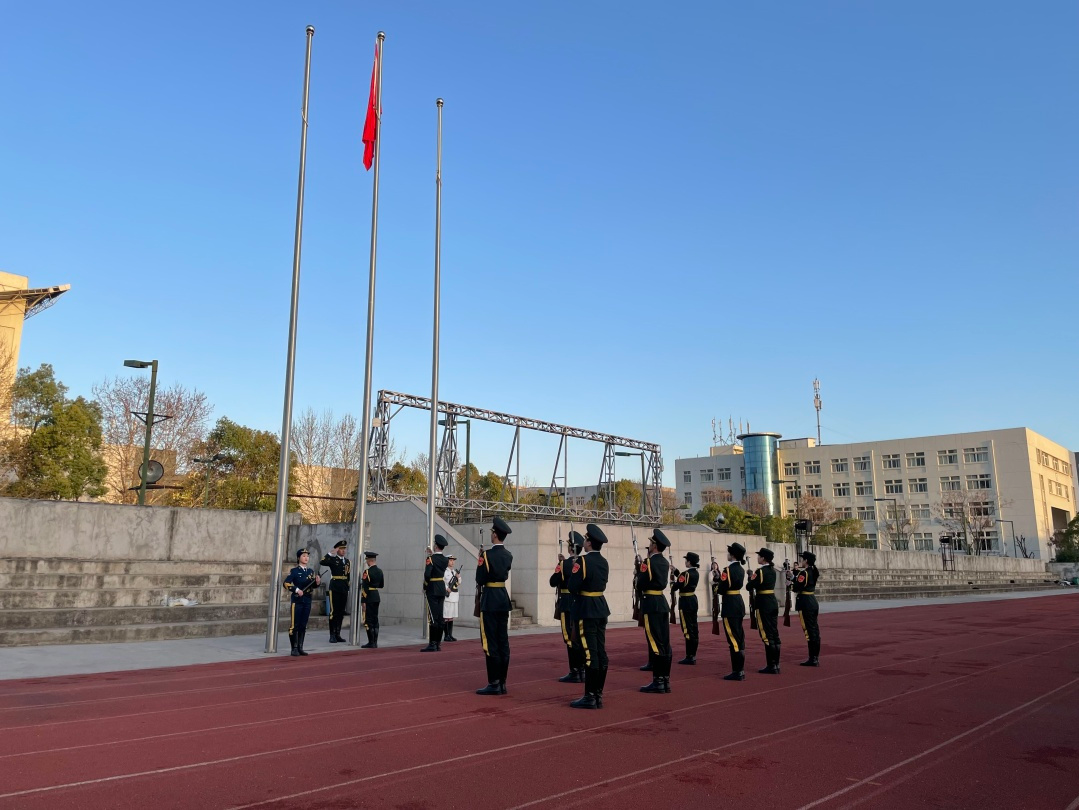 迎着朝阳,伴随着国旗班铿锵的步伐和洪亮的口号,升旗仪式正式开始。鲜艳的五星红旗伴随着雄壮的《义勇军进行曲》冉冉升起。全体师生行注目礼,共唱国歌。