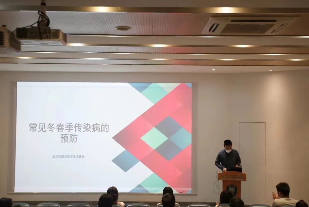 2022年11月10日下午2点30分,我校在3101开展“秋冬季传染病防治暨急救知识”主题讲座。本次讲座由学工处袁攀老师和校医院卢医生主讲,我院新生辅导员郑冰洁及八名新生代表参会。