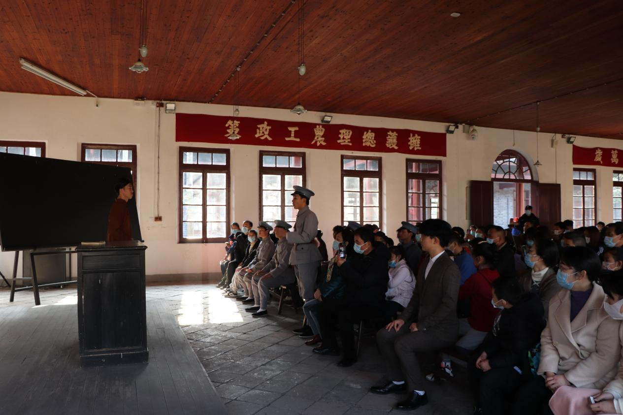 翻开历史篇章,拂去岁月风尘,那浸满鲜血的道路依旧醒目。为培养广大学生的历史文化认同感,感同身受的接受红色历史教育,米兰体育网页版登录的师生精心组织开展了一场别开生面的“情景剧党课”-《都府堤41号》、农讲所《历史的回望》。通过情景的创造和演绎,以肢体、语言、合唱结合的方式,沿着青年毛泽东、杨开慧、陈玉英等奋斗的足迹,回眸那风云激荡的峥嵘岁月。在中央农民运动讲习所,通过观看学生们的生动表演,再现了第一次国共合作时期毛主席创办的培养全国农民运动的干部学校,学生在毕业之后奔赴农村,如革命火种一般播撒神州,积极投身革命洪流之中,谱写了中国革命史、农运史、教育史的光辉篇章。党的革命先辈们为了解放全中国而前赴后继,英勇奋斗的精神深深激励着大家,一首《国际歌》更是让在场的人心潮澎湃,如临其境,久久不肯离去。