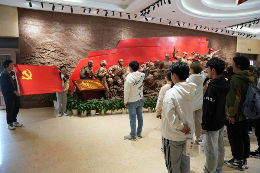 在鄂豫皖博物馆的主展厅,一幅巨大的战士浮雕吸引了大家的目光。上面每一位持枪冲锋的战士生动再现了革命战争时期战士们的激昂风貌和舍生赴死的决心,重现了那个烽火连天的年代。面对这样一副庄严肃穆的浮雕,学生骨干们聚在一起共同宣读入党誓词,声音铿锵有力,彰显了新时代青年的责任与担当。