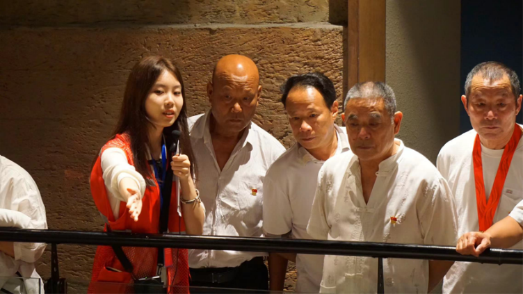 同学们身穿“红马甲”,对阜阳博物馆的通史厅、东西廊桥、名人墙等进行了详细的讲解。无论是深深怀念焦陂的欧阳修还是镇馆之宝龙虎尊,同学们将历史文物特点和故事背景相结合,通过生动有趣的讲解方式吸引更多的人了解阜阳的历史文化,获得博物馆工作人员和游客们的一致肯定和表扬。