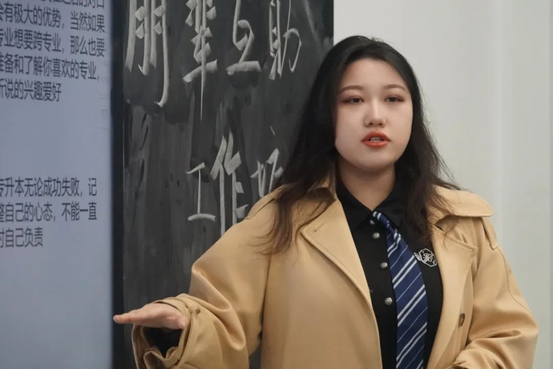 在答疑解惑环节,同学们也纷纷举手,提出自己的问题。例如“要不要报名专升本考试班”“有没有好的备考经验与学习方法”等。郭欣雨同学表示,“根据所报考的学校来决定要不要报班,但是无论报班与否,都要努力学习,只有努力才不会辜负自己。不要摆烂,要正常生活,将生活与学习相结合。”