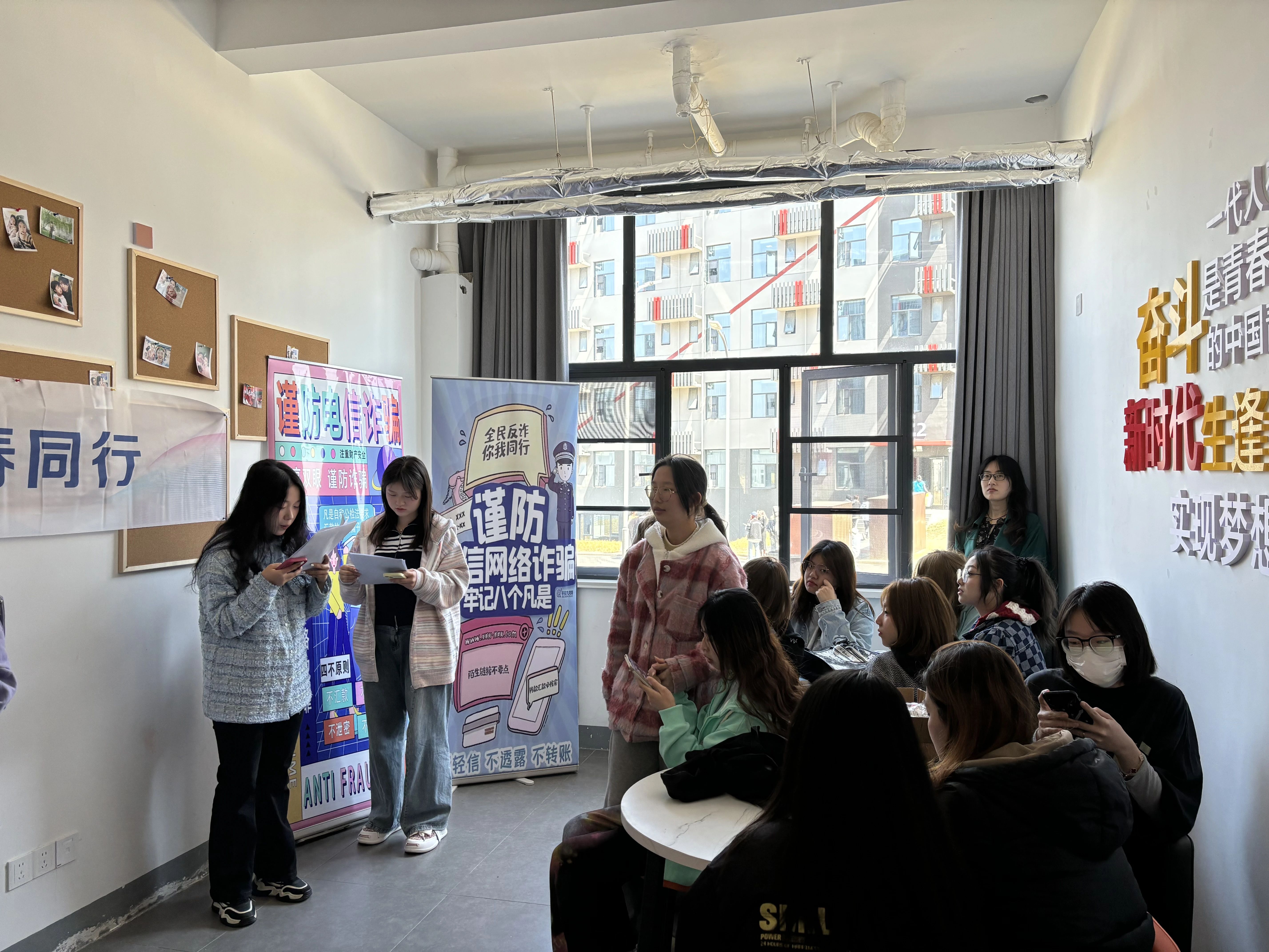 共青团米兰体育网页版登录委员会网讯(通讯员: 设计学院) 为提高广大学生识诈、防诈、反诈意识和能力,营造安全和谐的校园环境,设计学院在大悟校区D栋一站式学生社区举办了一场生动的防诈骗宣传,设计学院辅导员徐威、李林芹、李雨佳及学生代表参加活动。