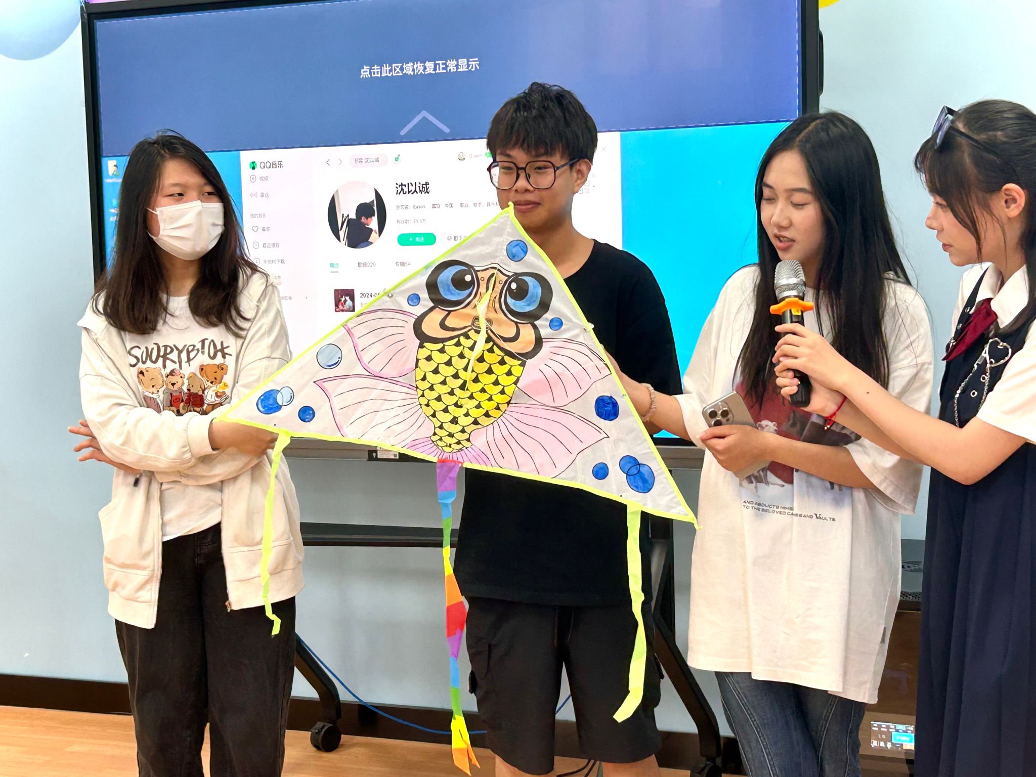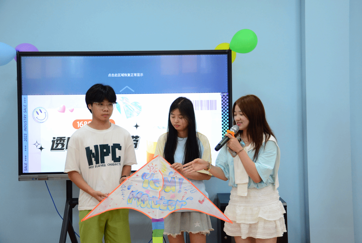 在“最美风筝”比拼环节,各小组轮流登台展示团队的作品,并阐述创作理念。评委们根据风筝的创意、制作技巧和展示成果。最终,作品《You matter》荣获“最美风筝”奖项。