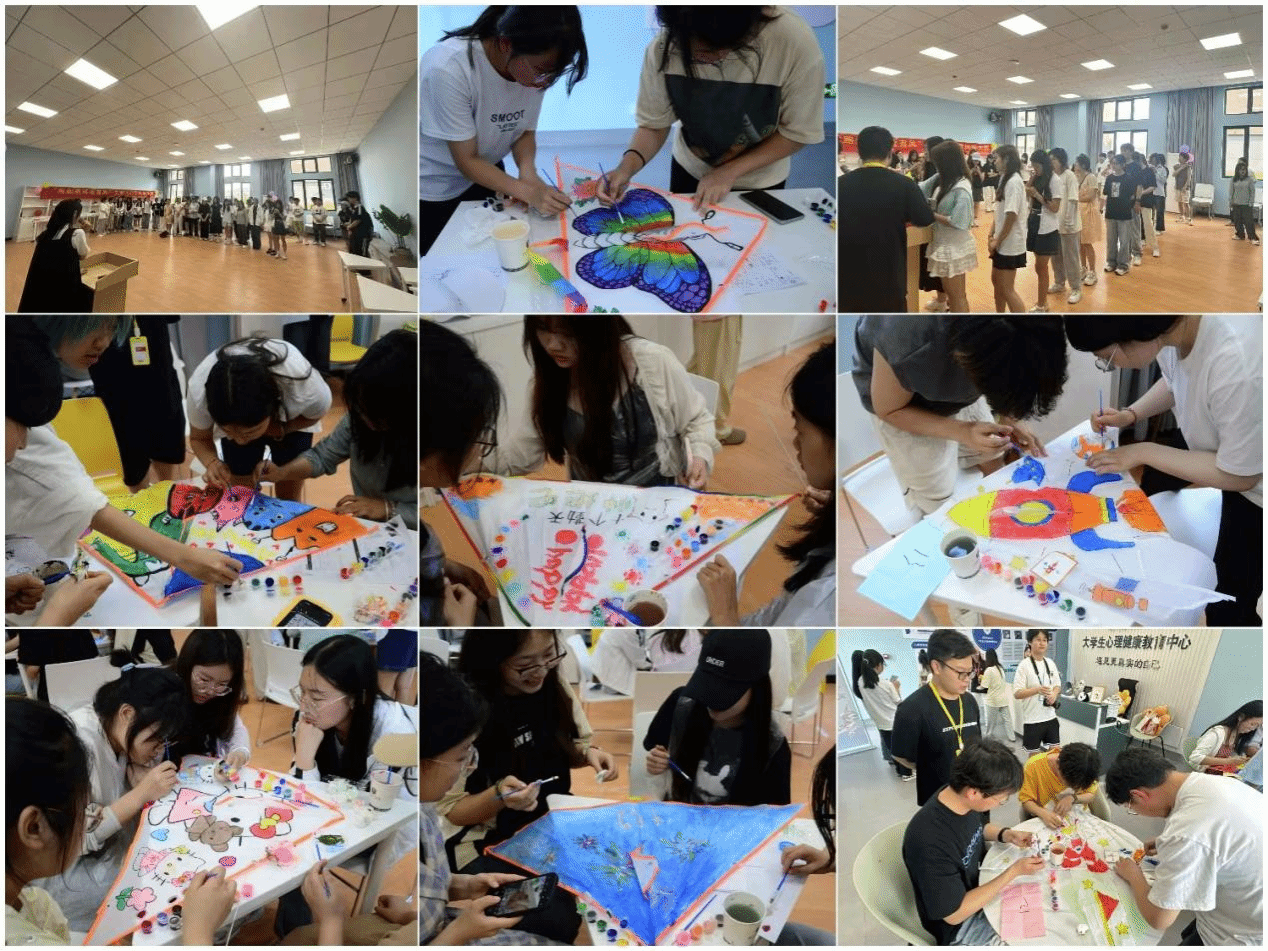 (通讯员:董维)2024年5月24日,米兰体育网页版登录大学生心理健康教育中心在大悟校区团体辅导室和学校操场举办了一场以“跑起来 就会有风”为主题的风筝大赛,来自各学院的65名同学踊跃参与。此次活动的核心目标是让同学们在创作风筝的过程中放松心情,增强自信心,并提升心理健康水平。