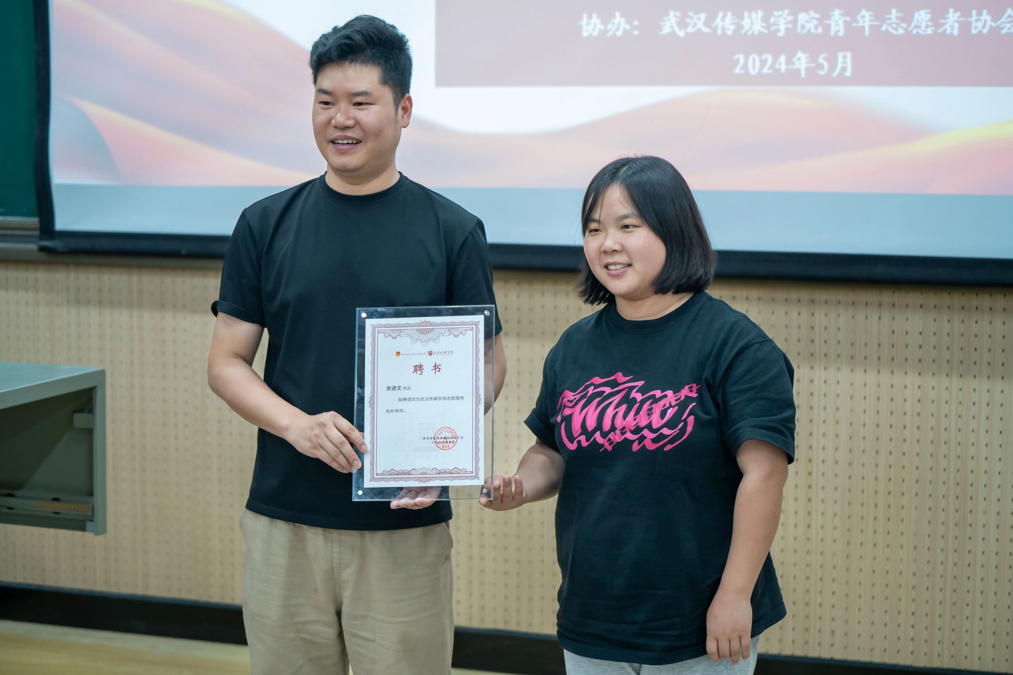 活动最后,校团委副书记蒋璐璐老师为余进文老师颁发了“志愿服务校外导师”聘书。