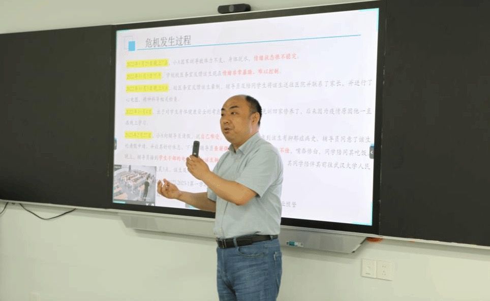 研讨会中,杨子云副教授围绕发现危机的两种路径展开,详细讲解了危机处理流程和可行的解决方案。通过一系列真实的案例,向参会老师们展示了心理危机对个人及社会的潜在影响,并且强调及时地干预和有效的社会支持的重要性。同时,也说明了家校合作在危机干预中的重要性,并为老师们提供了切实可行的沟通合作建议。