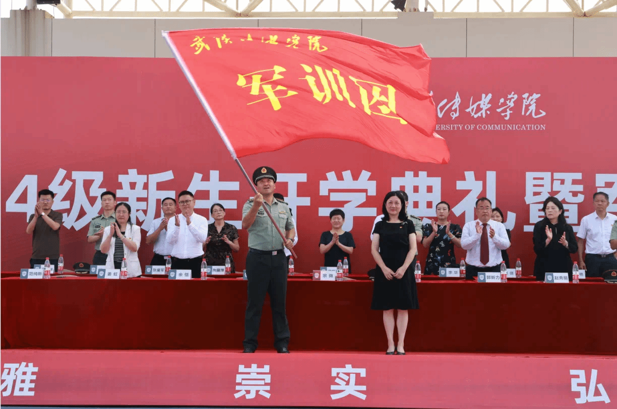 新生代表林铃泠带领全体同学宣誓来自电影与电视学院的林铃泠同学带领大家宣誓:“今天,我佩戴校徽,以青春之名,许下誓言:向阳向上,奋斗以成。生逢盛世,重任担当。我将秉承校训:博雅、崇实、弘志、拓新。勤奋好学,练就本领,勇敢担负时代使命,谱写新时代传媒人的绚丽华章。