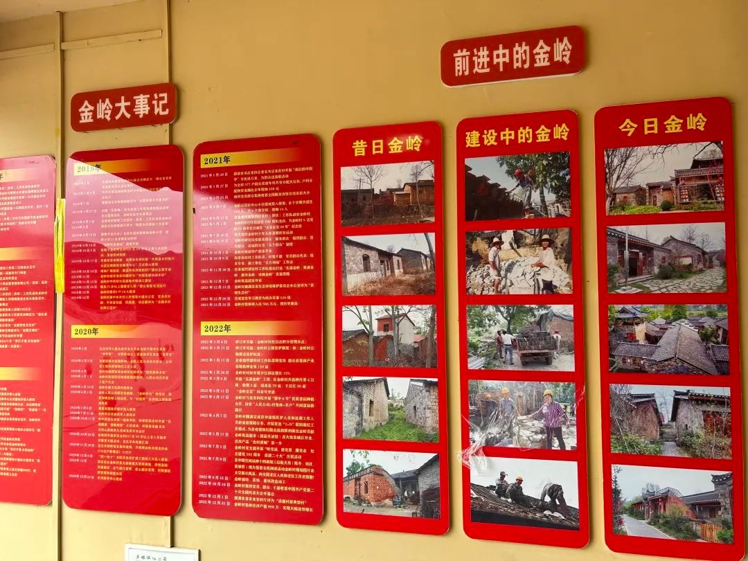 在学思践悟中担使命,实践队的队员们深入乡村一线,充分探索金岭村的振兴故事。通过走访调研了解到金岭村是湖北省精准扶贫试点示范单位、湖北省新农村建设试点示范单位、湖北省绿色生态乡村旅游度假试点示范单位。在村书记和村民们的努力下,全村依托特色生态资源,贯彻“绿水青山就是金山银山”的发展理念,将山水资源化为优质资产,逐步形成红绿古色相结合的产业体系,着力探索党组织领导下“村集体公司+股份合作+自主经营”的发展道路,带动全村共同富裕。