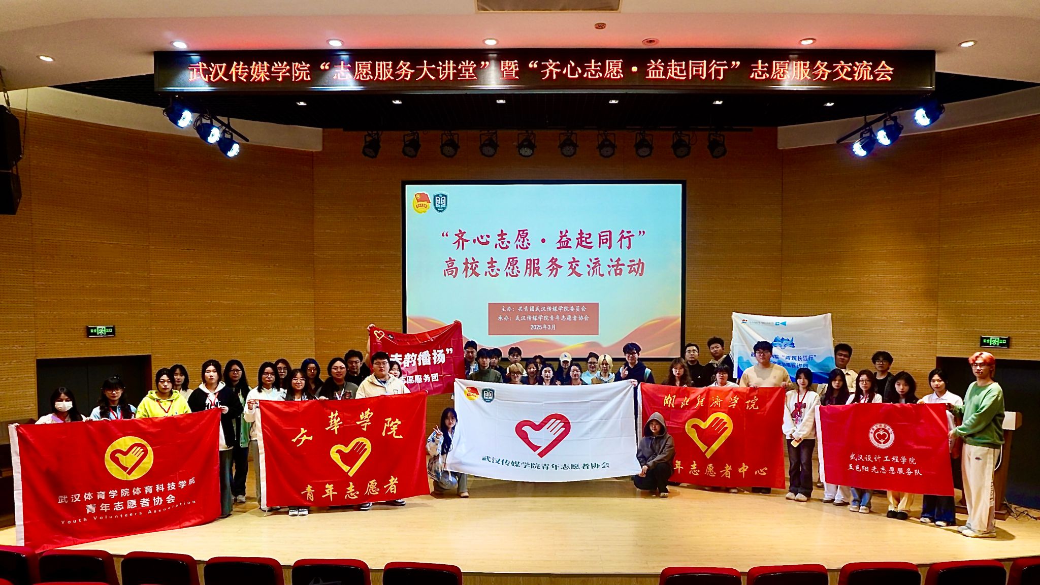 (通讯员 华震东 刘婷 张铭宇)3月27日,我校在武汉校区圆形报告厅成功举办了“志愿服务大讲堂”暨“齐心志愿·益起同行”高校志愿服务交流会。此次活动由湖北省志愿者协会和湖北省志愿者培训学院指导,共青团米兰体育网页版登录委员会主办,米兰体育网页版登录青年志愿者协会承办,播音主持艺术学院青年志愿者协会、电影与电视学院青年志愿者协会协办。校团委书记瞿宗巍、校团委委员华震东出席了活动,同时,来自湖北经济学院、文华学院、武汉设计工程学院、武汉体育学院体育科技学院的青年志愿者协会代表以及我校各学院的师生代表也参加了此次盛会。