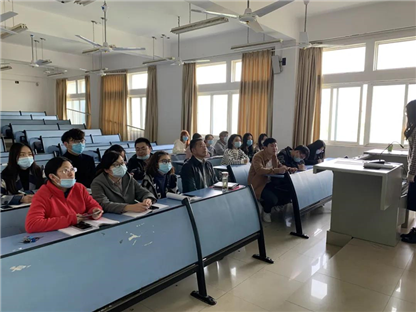 活动伊始,全体起立,奏唱国歌,并在党旗下重温了入党誓词。党总支组织委员张坤坤带领大家共同学习了习近平在党史学习教育动员会上的讲话精神。我院党员干部纷纷表示,要自觉把思想统一到习近平总书记重要讲话精神上来,增强“四个意识”、坚定“四个自信”、做到“两个维护”。