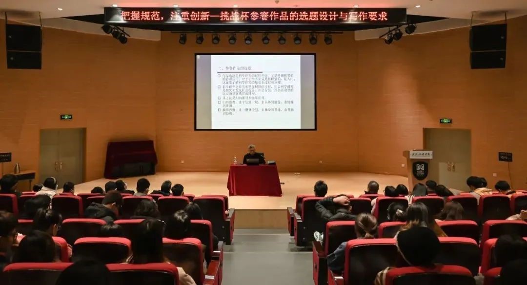 本次讲座以“把握规范,注重创新——挑战杯参赛作品的选题设计与写作要求”为题,冯桂林教授从大赛的发展概况、参赛作品的选题、选题的调研方案设计与实施、参赛作品的架构设计与撰写以及撰写中的注意事项等五个方面进行讲解分析。结合多个挑战杯历年获奖实例,对哲学社会科学类调研报告的规范与创新进行了详细指导。