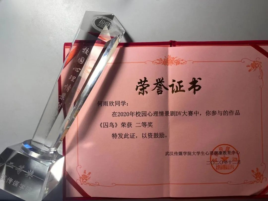 (武传新闻网讯)由我校心理中心李霞、谢利红、刘丽三位老师指导,学生姚文翔、何雨欣(导演),何雨欣、邱吴霞(编剧),何苏杭(演员),宋丽爽、卢健(剧务),共同创作的心理微电影《囚鸟》,荣获首届全国高校心理微电影优秀作品。