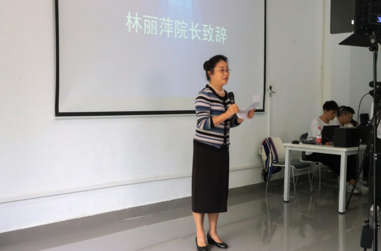 开幕式第一项,传媒技术学院林丽萍院长发言致辞。据林院长介绍,本次展览的22件优秀作品,涵盖视音频类的智能制造、数字文旅、数字校园、数字物流和新材料、数字灌溉、数字防灾、数字医疗、数字交通等9大类数字经济产业应用场景。林院长说:“本届展览强化创造性,并搭建‘学、用、展、评、转’综合平台,塑造文化育人、专业育人的新赛道。”