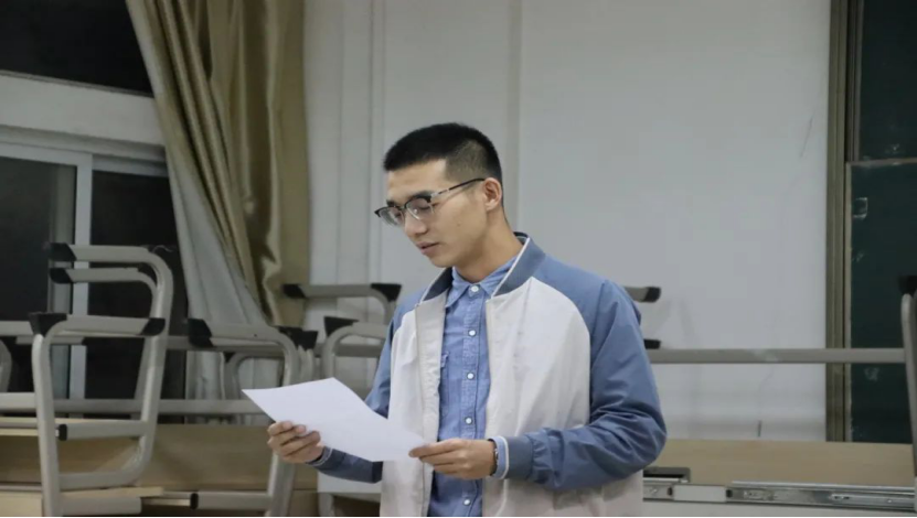 大会第五项,由新闻传播学院第十五届团学组织团委学生副书记、学生会主席沈方剑进行了发言讲话。沈学长表达了对时光飞逝的感慨,并希望团学组织的同学都“不要闲下来”,去努力做想做的事,成为想成为的人。并对新传团学组织与团学工作中的自己进行了不舍的道别,希望不论是自己还是在座的每一位同学都可以在未来做到“得意不忘形,失利不失志!”