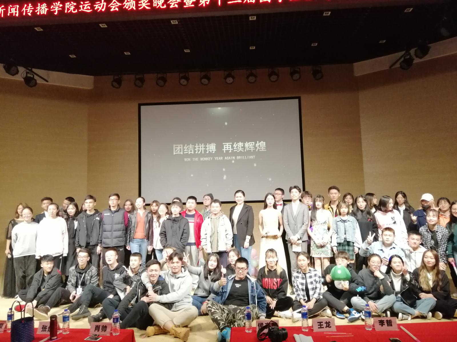在一支充满活力的开场舞后晚会会正式开始,晚会第一项是由侯亮荣书记为我们致开幕词,其中侯书记表示非常感谢我们新闻传播学院全体成员的努力,并说道只要你有所作为就能达到你所要的高度,只要你有所行动就一定能做到你所应该做到的事。在一个幽默的相声后大会进行第二项由侯亮荣书记为张中正,陈辰等共7名优秀运动员,肖帅老师为周文清等5名优秀志愿者,张一蔓老师为马文凯、王华等5名优秀方阵队员颁奖。在一个精彩的小品后大会进行第三项是第十三届团学组织11名干部的聘书发表仪式,第十三届新闻传播学院学生会监察部部长郜静枝、办公室主任包海进行干部代表发言,王龙老师也发表了自己对这群学生深深的不舍之情,还特意为他们献唱一首歌曲。