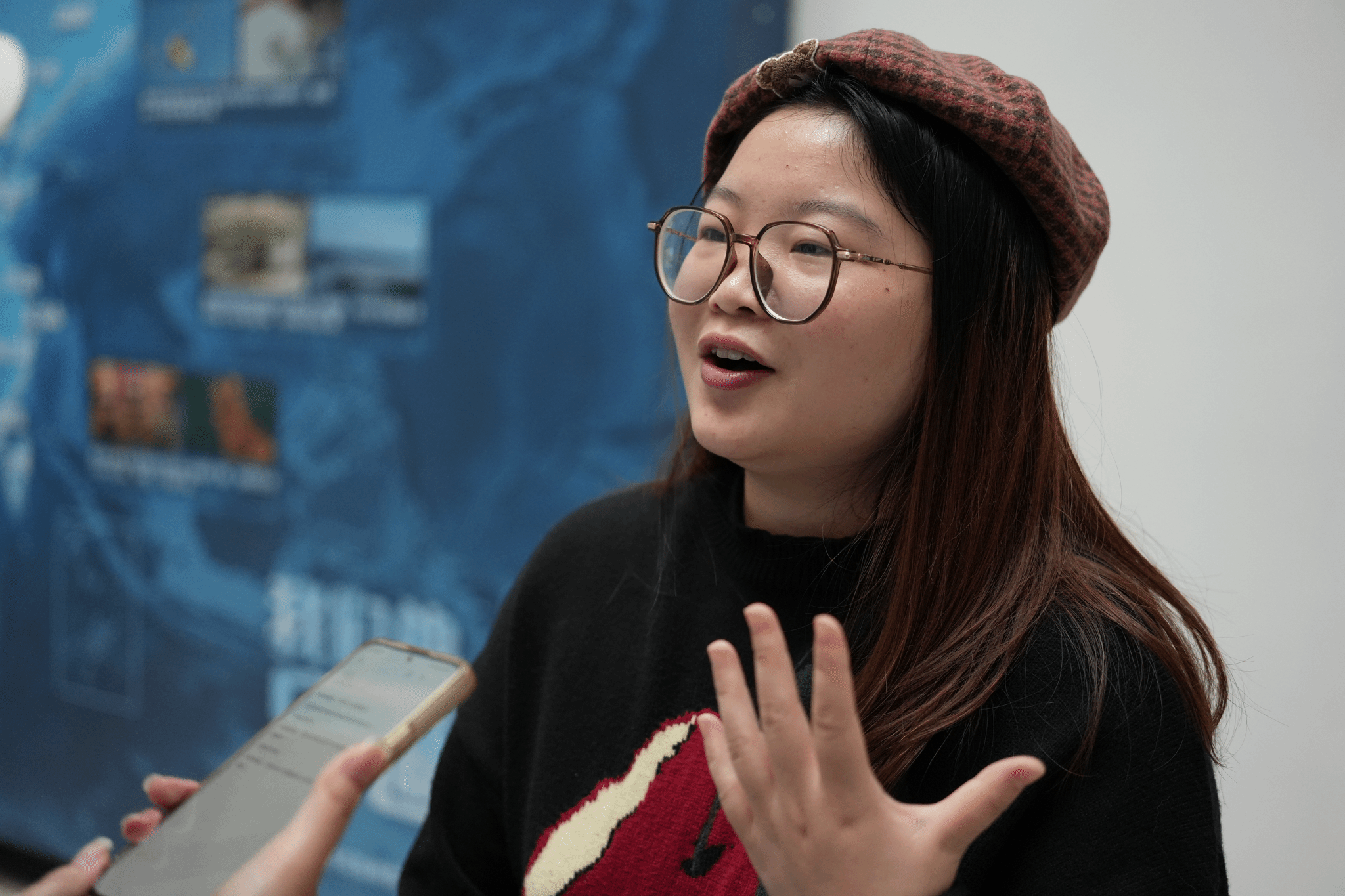 活动伊始,在场师生共同观看了纪录长片《旷野歌声》,该片描述了西南高地上一个苗族合唱团的故事。放映结束后,陈东楠导演与大家分享了她在研究生学习以及拍摄期间的所思所感,她讲述到:“我最开始在央视实习,在实习的办公室书架上有很多关于中国纪录片的书,记得最清楚的一个片子是讲中央美院的一个人体模特,他是一个很边缘的小人物,但是他又是一个很信仰自己职业的人,他觉得人体的美特别神圣,他会在大街上练习他的各种姿势。影片中的这些镜头,让我感受到了一种特别神圣的光辉,是我之前拍片子时没有感受到的,在看完这个片子后我就感兴趣了,于是我选择申请了纽约大学的纪录片专业。”