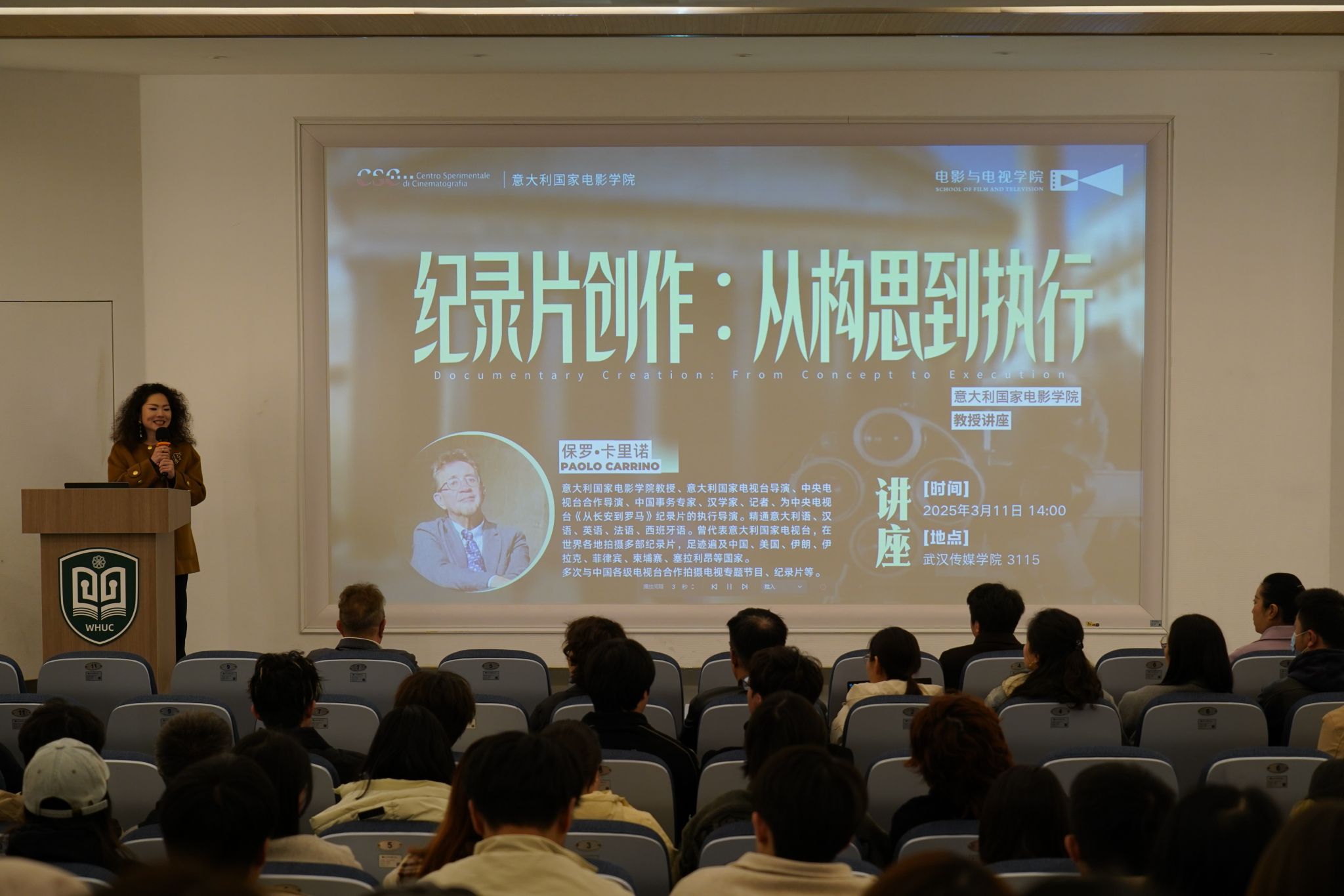 2025年3月11日下午,意大利国家电影学院代表团访问米兰体育网页版登录,其核心成员——享誉国际的导演、汉学家保罗·卡里诺(Paolo Carrino)教授在武汉校区为电影与电视学院的师生们带来了一场题为《纪录片创作:从构思到执行》的精彩讲座。这场中意电影文化的深度对话,不仅点燃了师生对纪录片创作的热情,更揭开了意大利电影教育“奥斯卡摇篮”的神秘面纱。