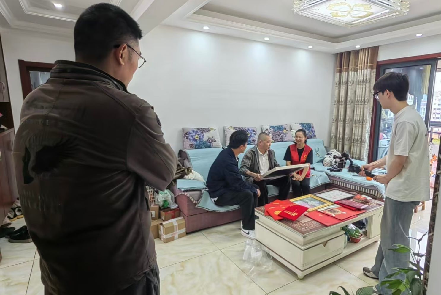 在老师的悉心指导下,同学们迅速明确了制作方向,全身心投入到紧张的拍摄工作中。师生们多方查阅资料,深入挖掘人物背后的时代故事。他们走访当年参与“双拥”活动的老兵和群众,收集到大量素材,真实还原了半世纪前那段军民鱼水情深的真实历史。