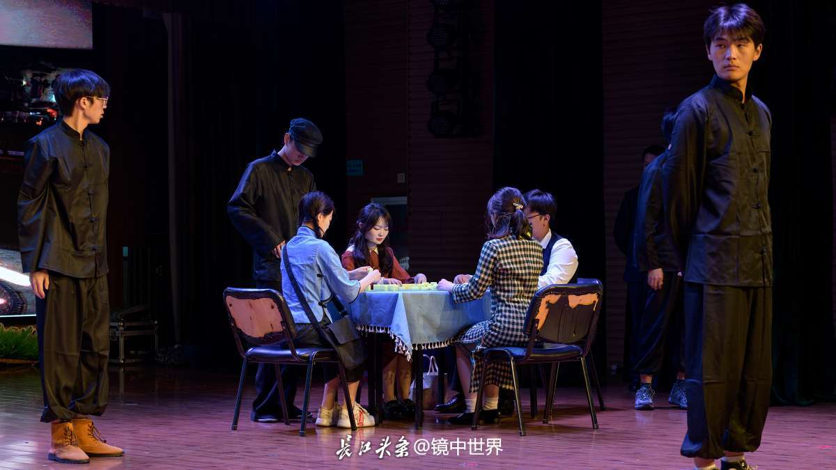 为了纪念武汉和平解放75周年,5月9日下午,江汉区文化馆三楼小剧场正在排练情景话剧《党旗升起》。