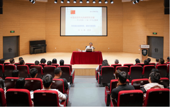 武传新闻网讯(记者 刘静 薛诗悦 摄影 李琦浩)为深入学习宣传贯彻党的二十届三中全会精神,10月11日下午,我校在圆形报告厅举行党的二十届三中全会精神专题辅导报告会。我校特邀湖北省委宣讲团成员、湖北省委党校(行政学院)孙大敏教授作党的二十届三中全会精神专题辅导,全体校领导、党委常委、各级党总支、党支部书记、委员及全体中层干部参加报告会。本次会议由党委宣传部部长周盈芳同志主持。