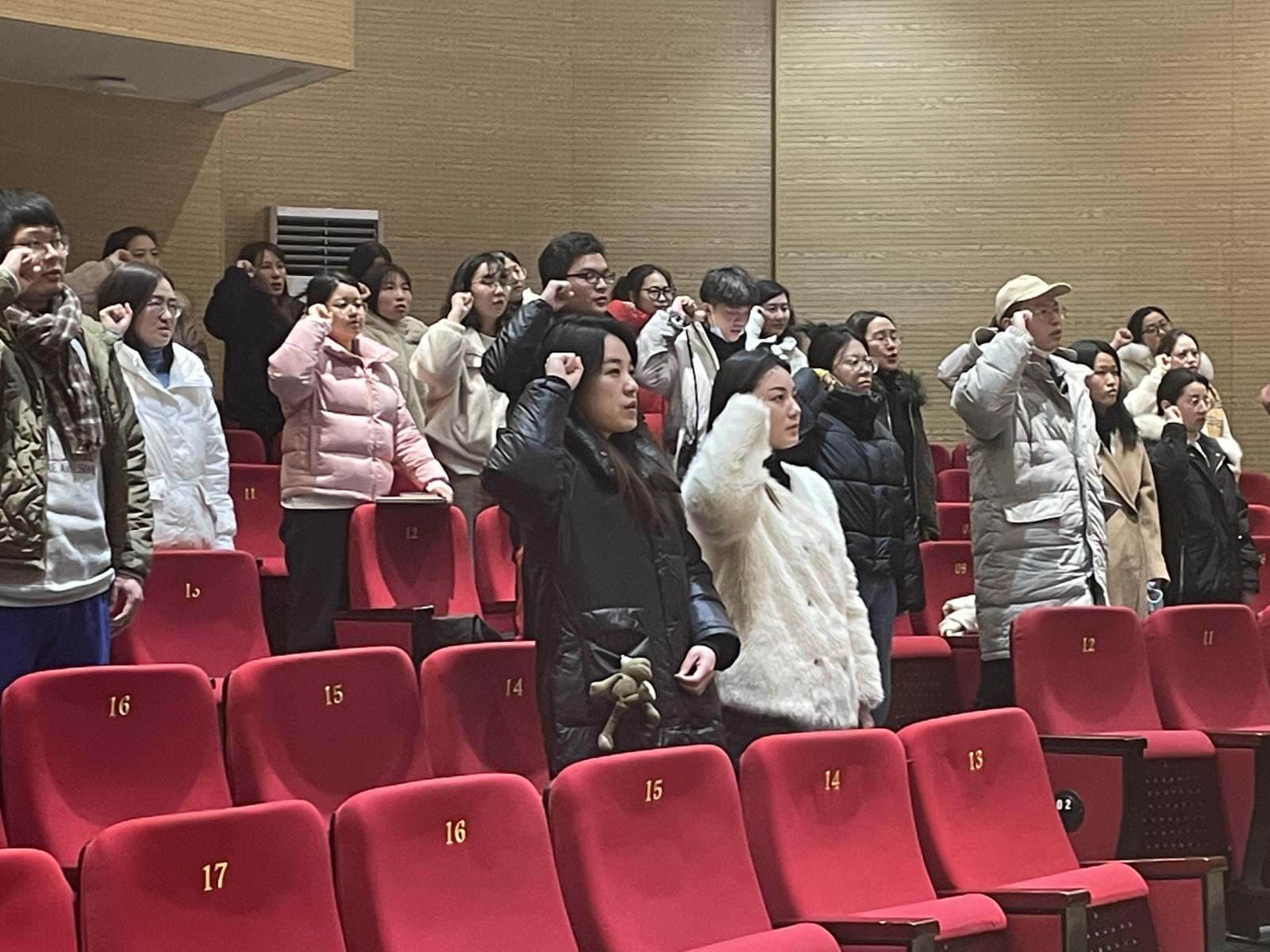 在培训会的尾声,新教师代表胡荣熙老师作为领誓人带领全体新教工进行入职宣誓。